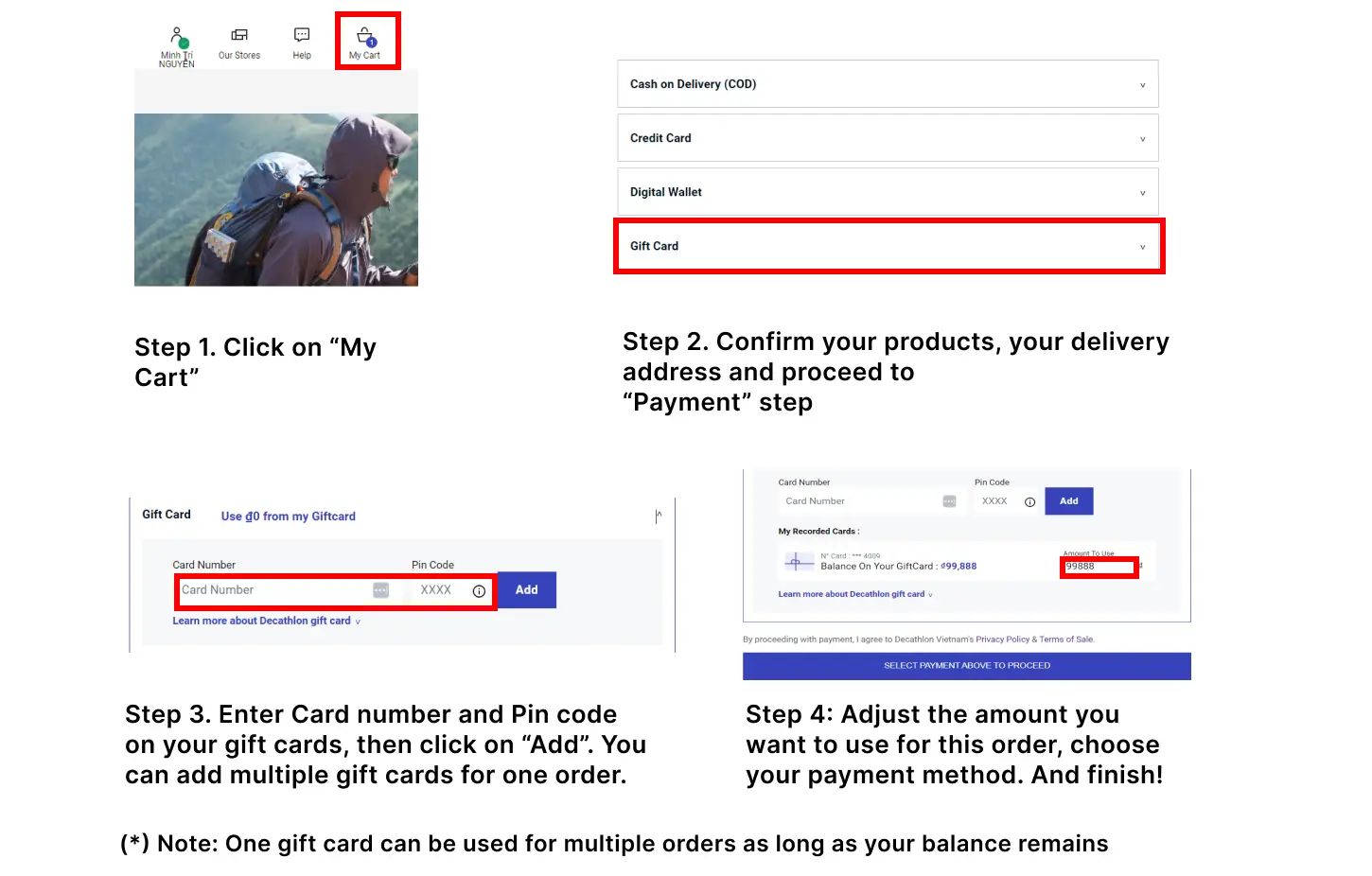 Các dùng thẻ quà tặng trên website và App Decathlon